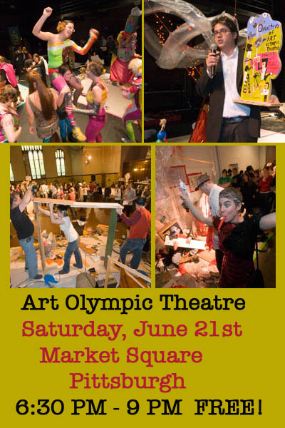 This event is a 4th River Project of the Three Rivers Arts Festival. The event will begin with a concert by Opek at 6 PM. The event is made possible in part by a Seed Award from the Sprout Fund. Penn Brewery is the official beverage sponsor for Art Olympic Theatre.