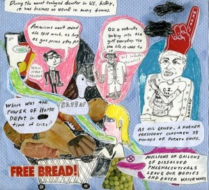 I submitted this piece to the Visual Response to the Gulf Oil Disaster show curated by the Foster Collective at Landslide Gallery in Chicago.  (July 23rd through August 13th 2010)  The show required artists to create responses to the oil spill on gas station paper towels.  I think this was a great idea.  The Foster Collective did a fantastic job of covering the event on their blog.