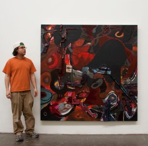 I made this painting in February of this year. Sometimes I need to make big atmospheric abstractions like this in between conceptual projects. Thinking in a different way helps me to clear my head. The decisions in this type of work happen through looking at the work as it evolves. It is more about color and the properties of paint than making a great philosophical statement or addressing a social issue. The applications of paint and layers in a work like this can be quite complex. While I was making it, a couple curators stopped by my studio and looked at me like I was crazy. Why are you painting? I guess just needed to at the time.