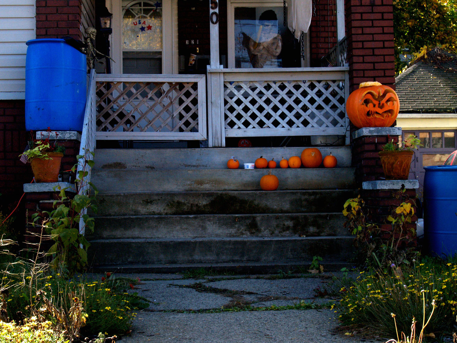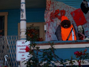 I drove around the Ohio River Valley this morning with my sister looking for Halloween weirdness. Most people nowadays buy cheap, generic decorations at the big box store. Here are a few of the better arrangements.