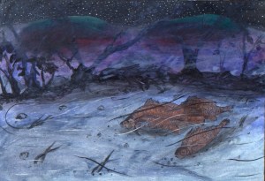 In the neighboring states of Pennsylvania and West Virginia, visual artists have come together to consider the ways in which hasty actions can have disastrous effects on our ecosystems. In organizing, Reflections: Homage to Dunkard Creek, West Virginia artist Ann Payne was compelled to take a look at the big picture. Dunkard Creek experienced a total fish kill in 2009. Water from the creek eventually makes it way to Pittsburgh and the Ohio River, a water supply for thousands.