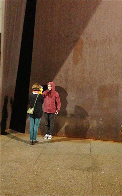 Tom Sarver with Daniel Baumann, Tobias Madison and Flavio Merlo in front of the Carnegie Museum of Art.