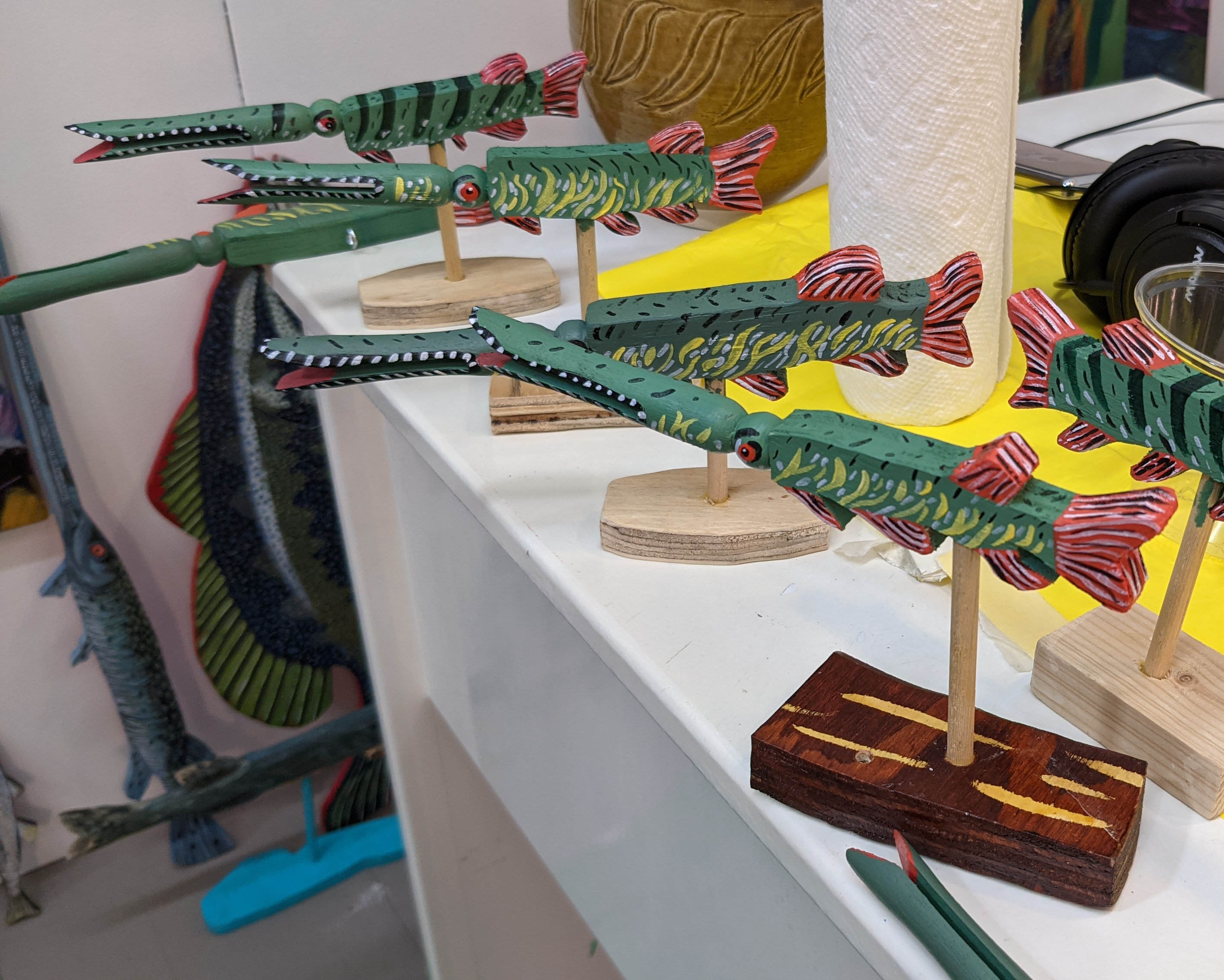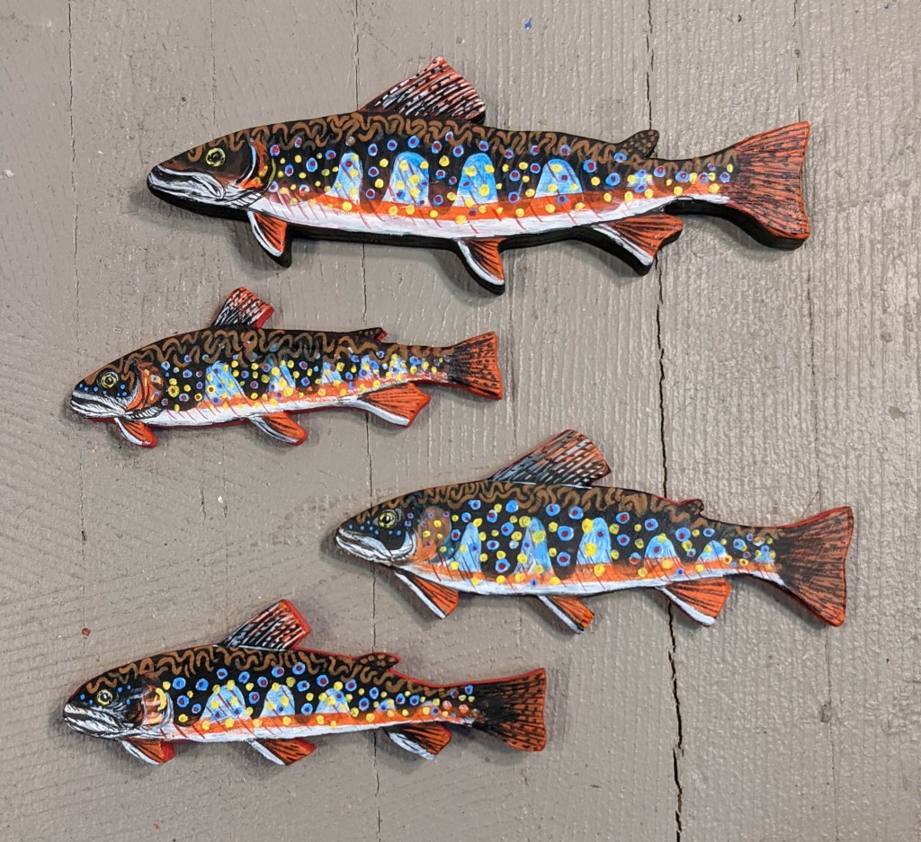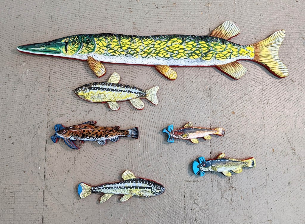 I’ll be selling a variety of wooden decorative fish, all inspired by fish species of Pennsylvania. Some are designed for wall display. Some have pedestals for display on a desk, shelf or mantle. I’ll also have some small holiday ornaments.
