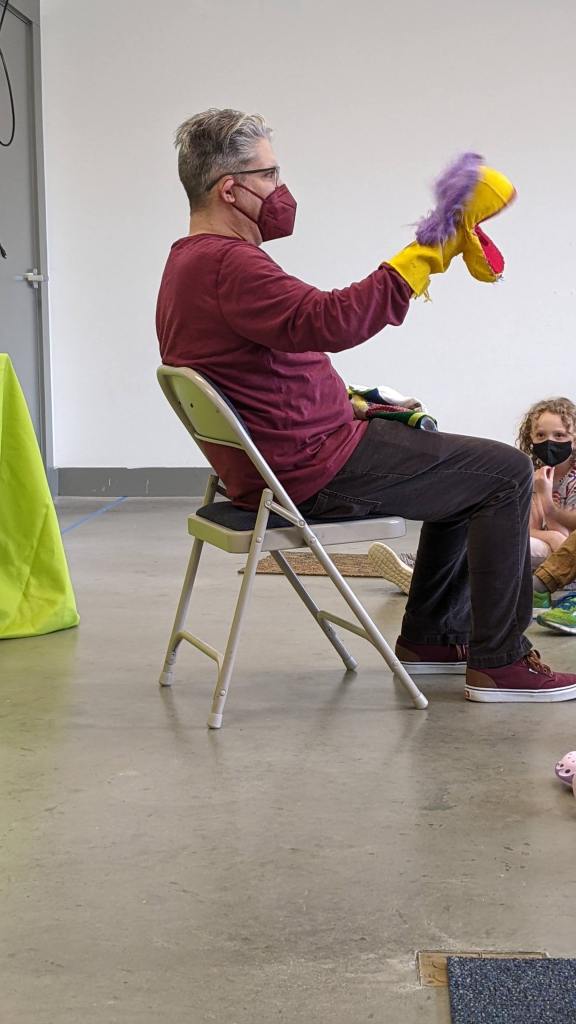 Lately I’ve been busy with the fourth season of Virtual Puppetry Residency, but I’ve also been working on getting my puppets back out into the world. I traveled to Athens, Ohio on April second to perform Puppet Talent Show, a new puppet show and demonstration at the Dairy Barn Art Center. The show is ideal for small children, involves lots of audience interaction and features three types of puppets: rod, marionette and glove puppets. Themes of the act include building self-confidence and encouraging others to celebrate their talents. The puppets include a variety of characters that I made over the past twenty years.