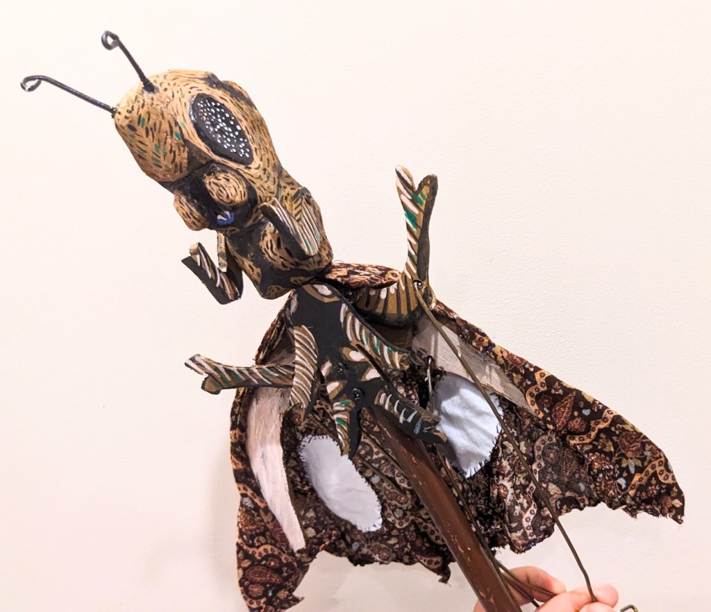 Mothman, inspired by the legendary 1960’s sightings of a giant moth-humanoid creature in West Virginia, will be on display in Puppets and Performance (Tom Sarver, 2024).