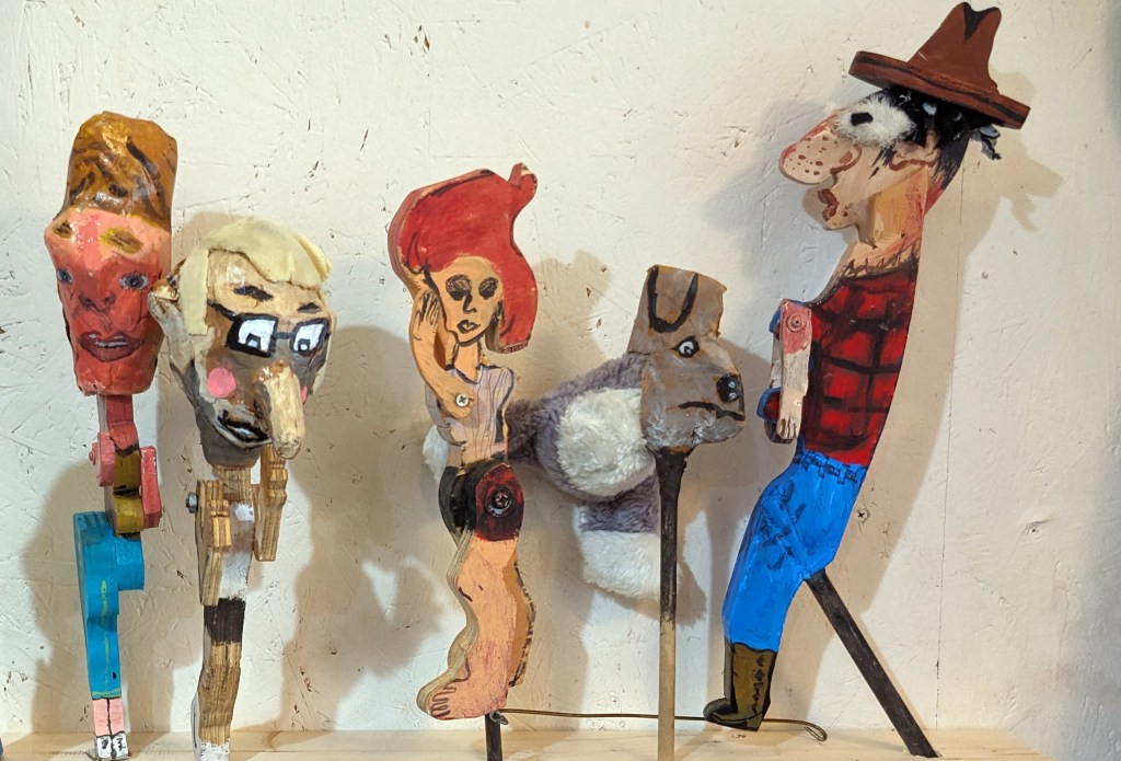 Puppets by Tom Sarver that will be on display at You Are Here gallery, starting October 5th (created 2009 through 2024).