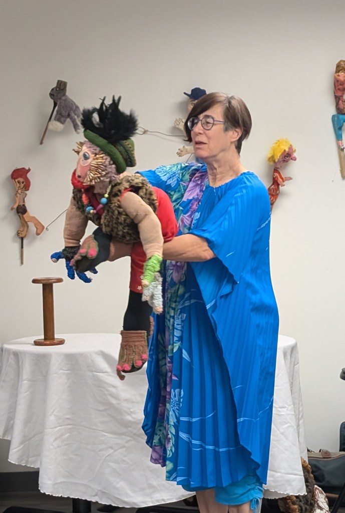 Exhibiting artist and puppeteer Sherri Roberts, performing at the opening reception of Puppets and Performance.