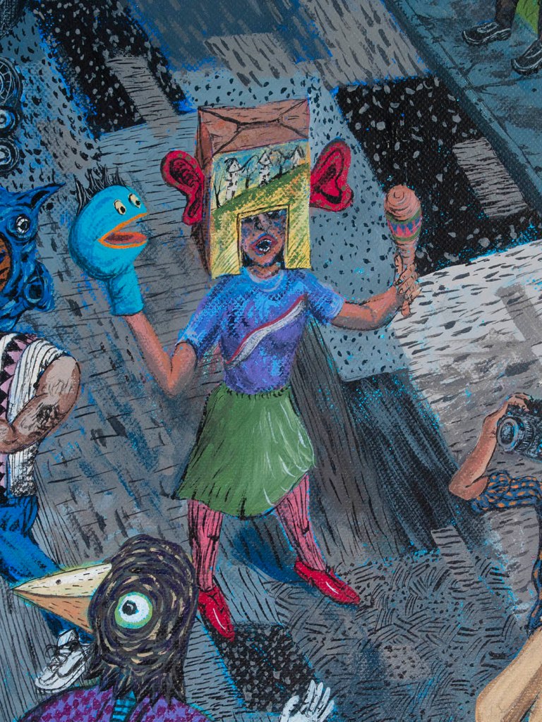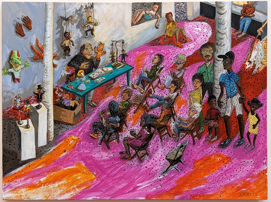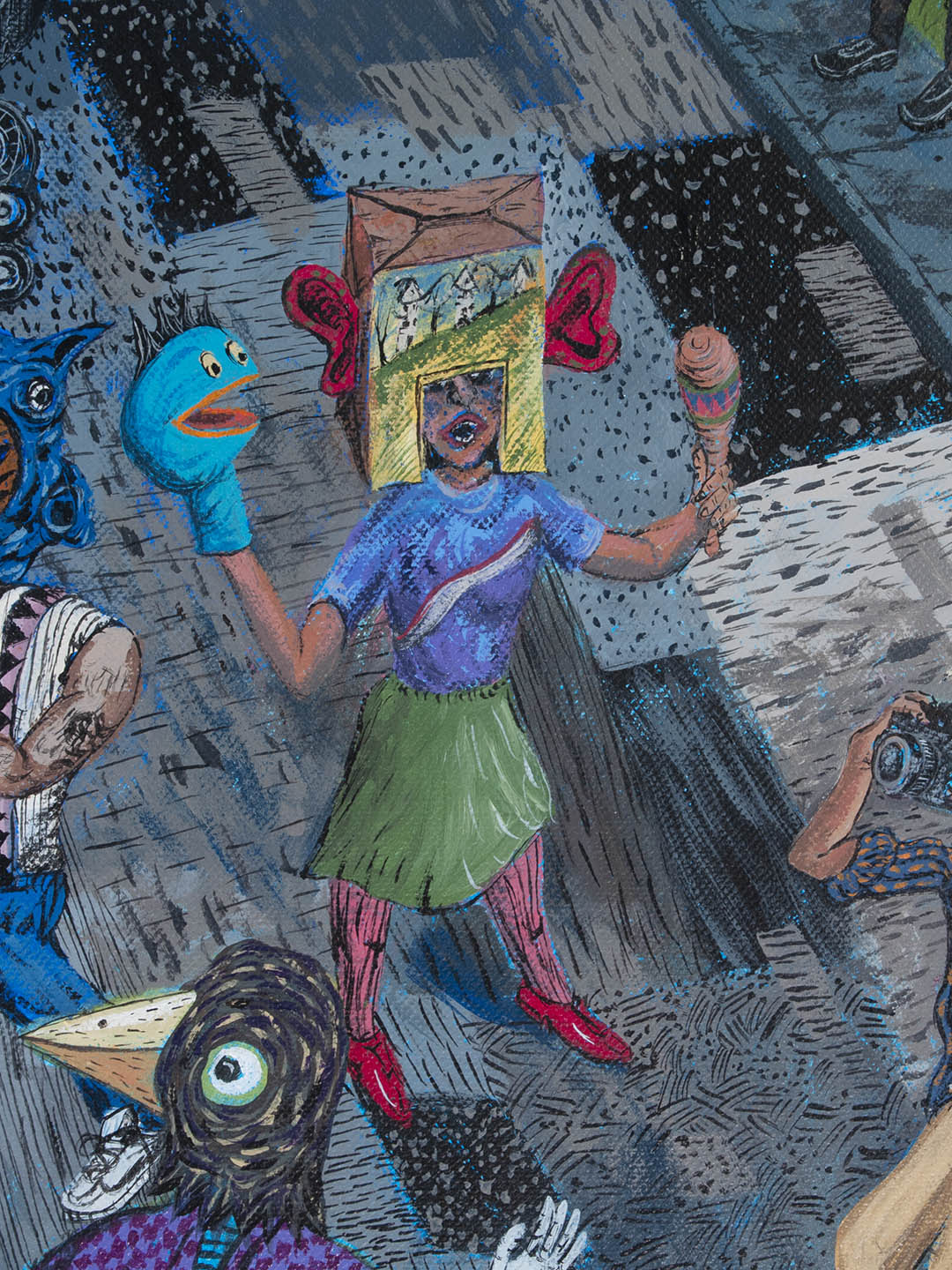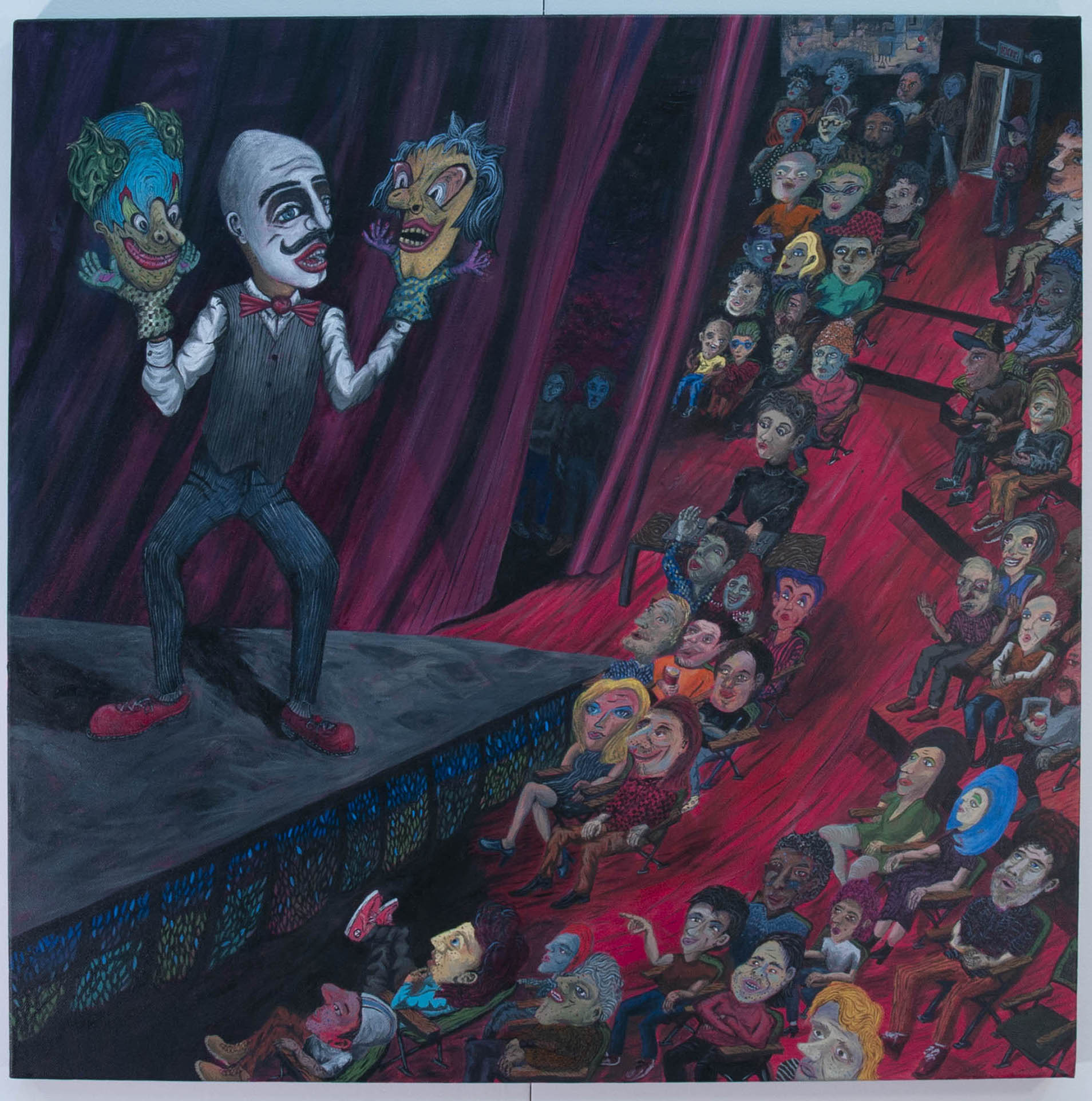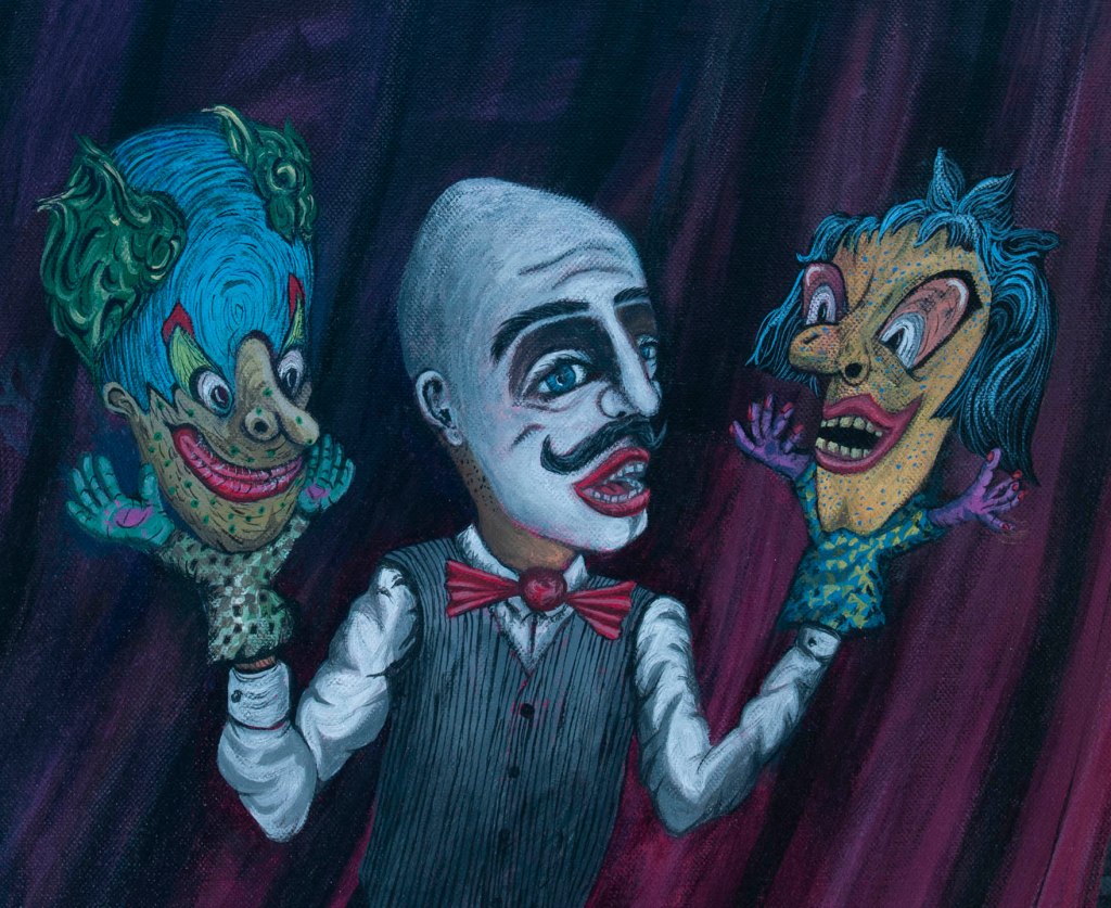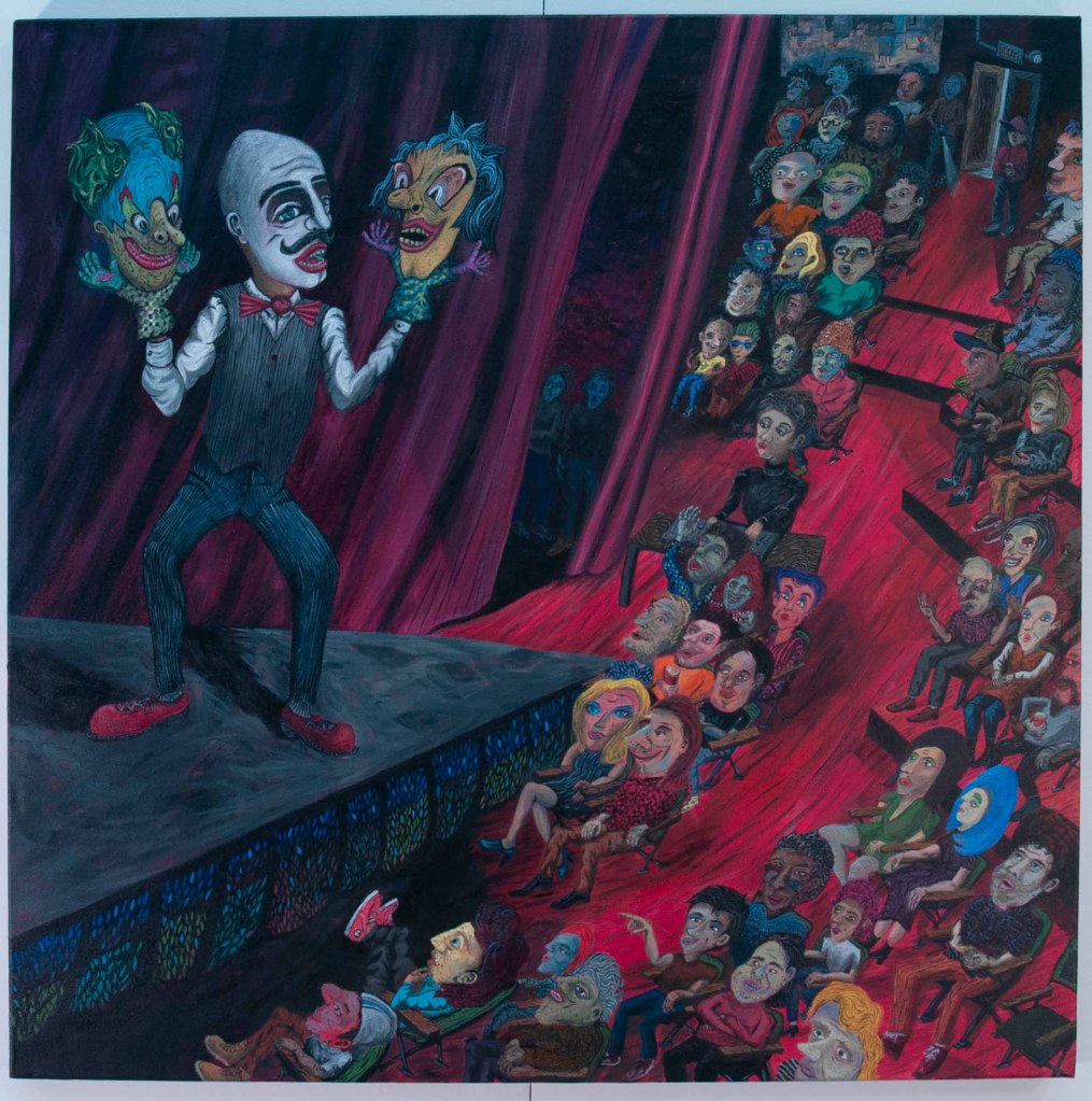 Puppet Parade, acrylic on canvas, 30″ x 30″, 2021, Tom Sarver