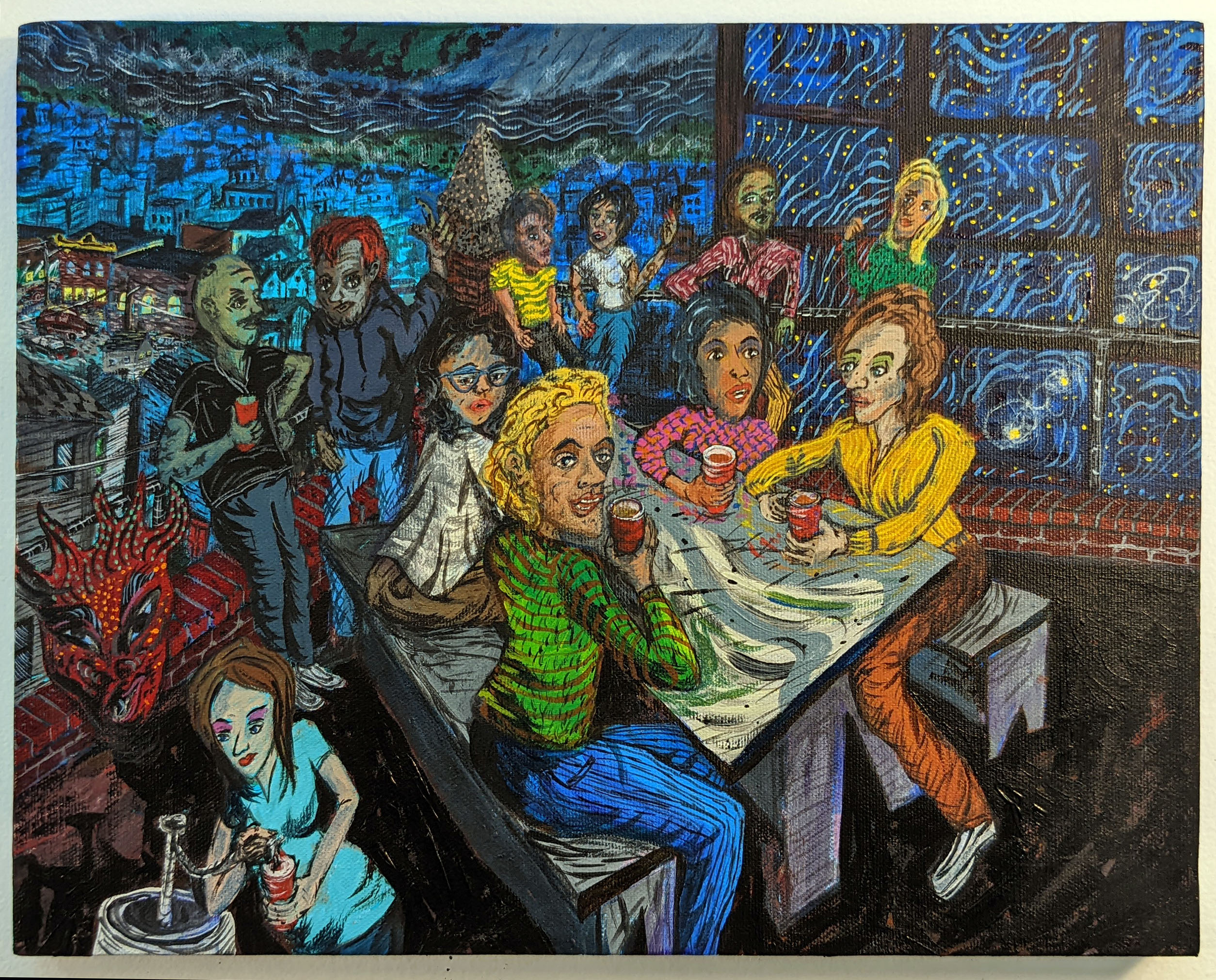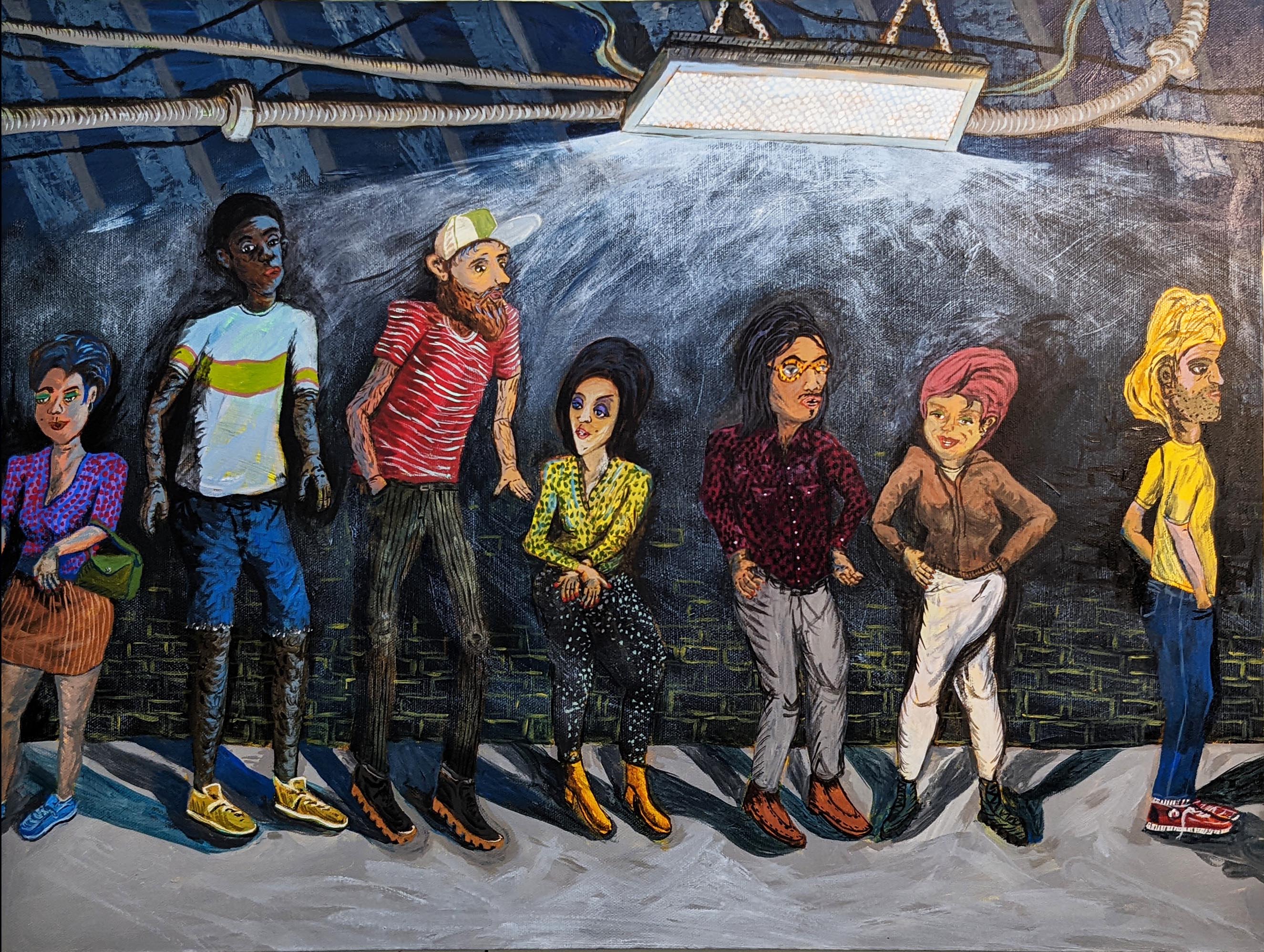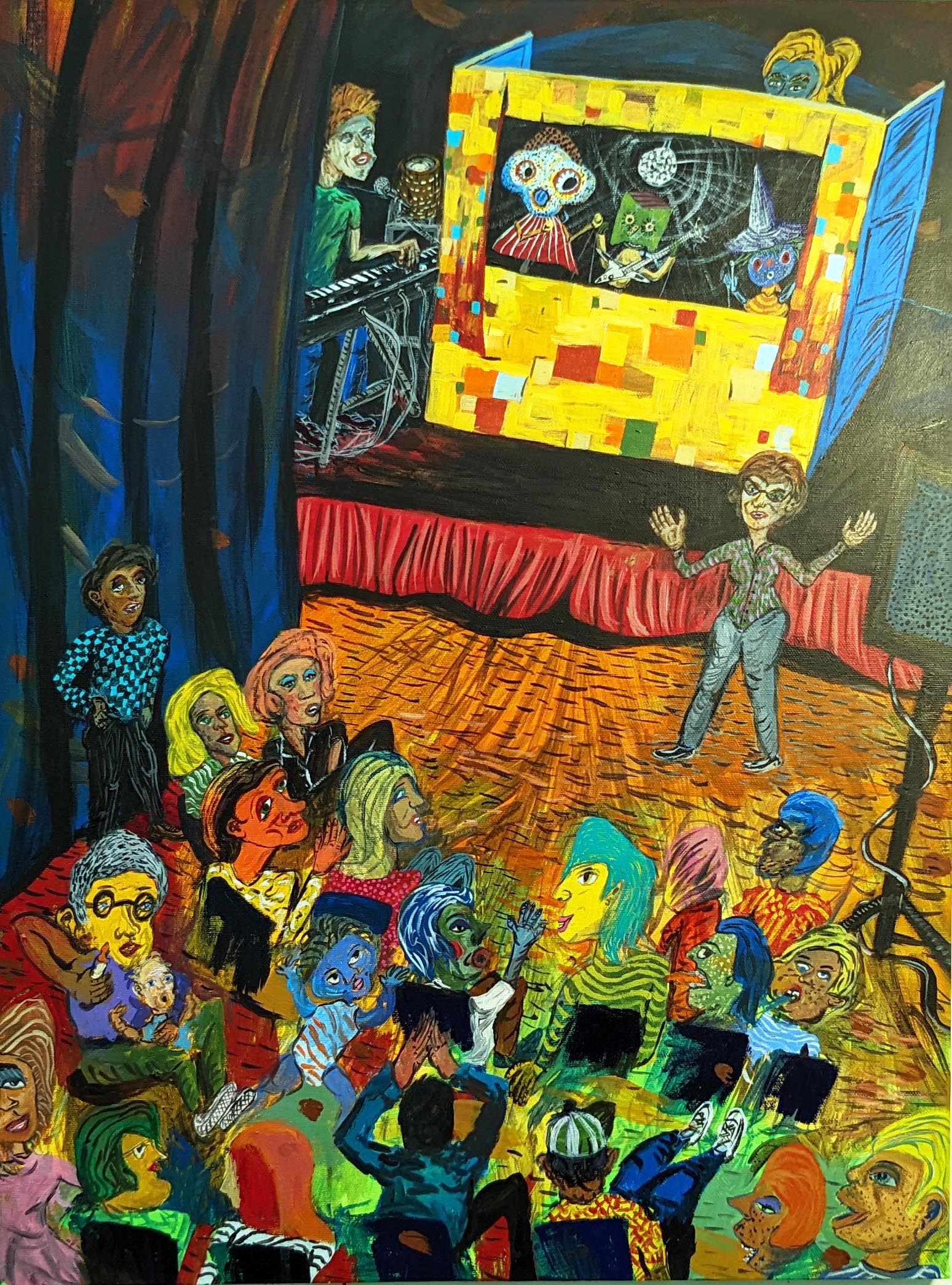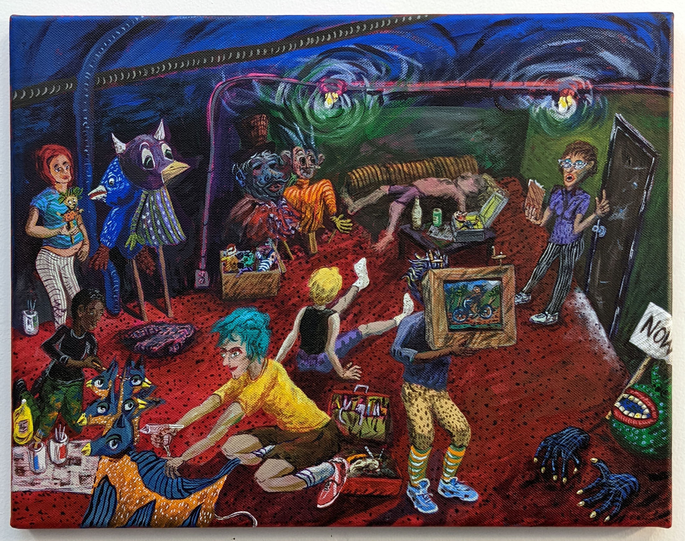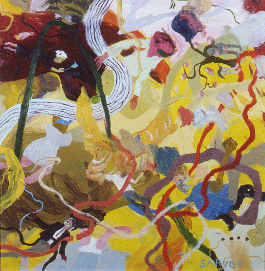 Puppet Parade, acrylic on canvas, 30″ x 30″, 2021, Tom Sarver