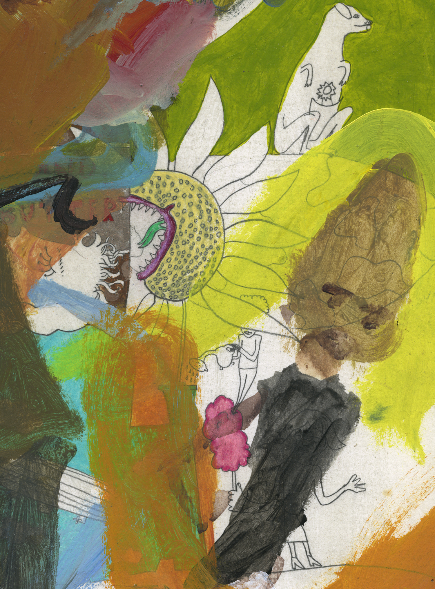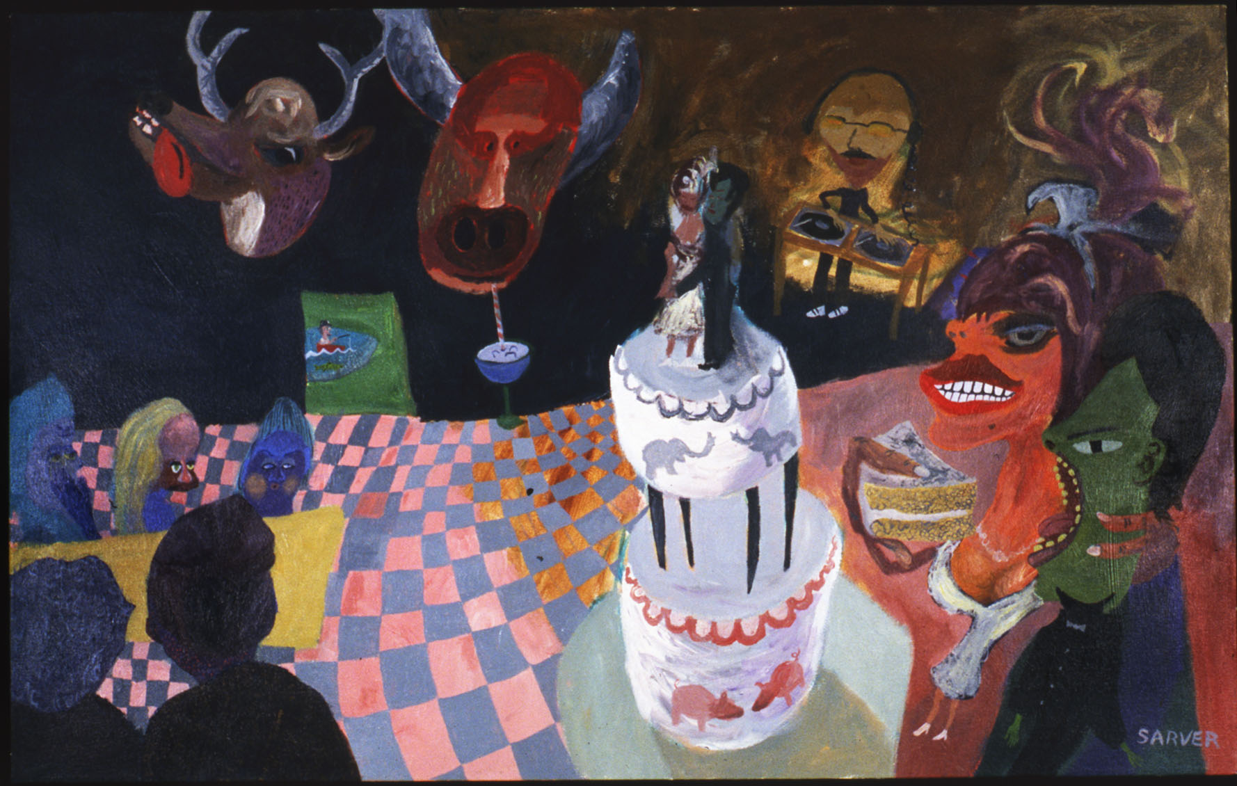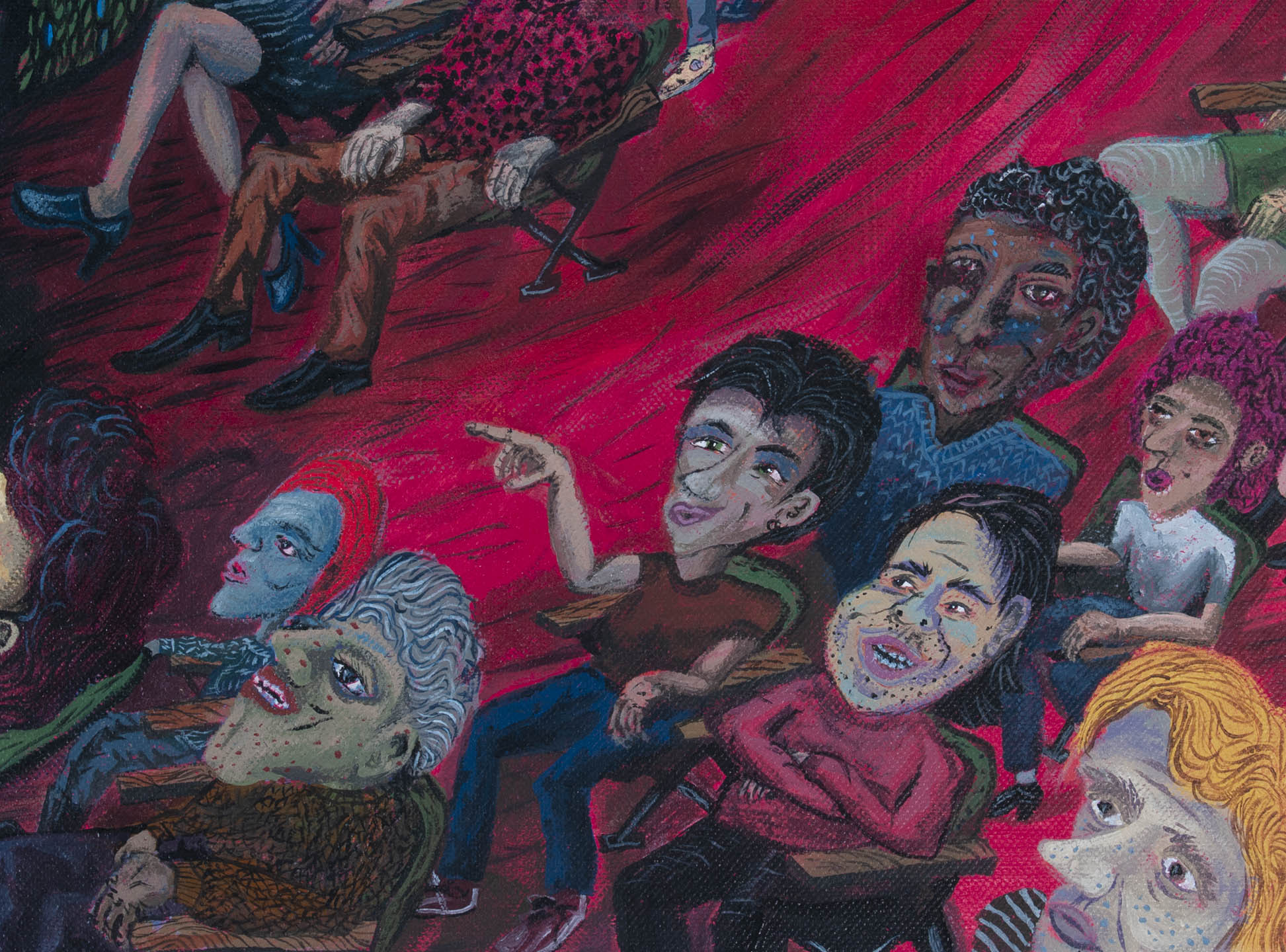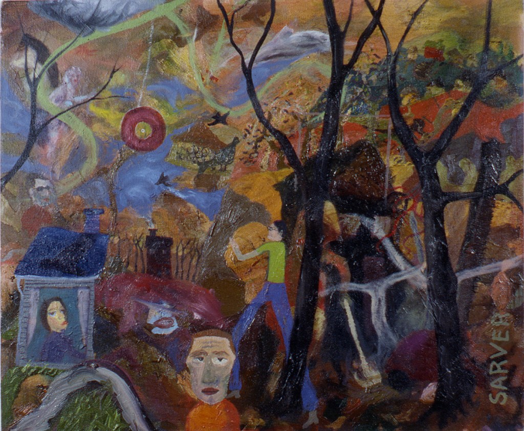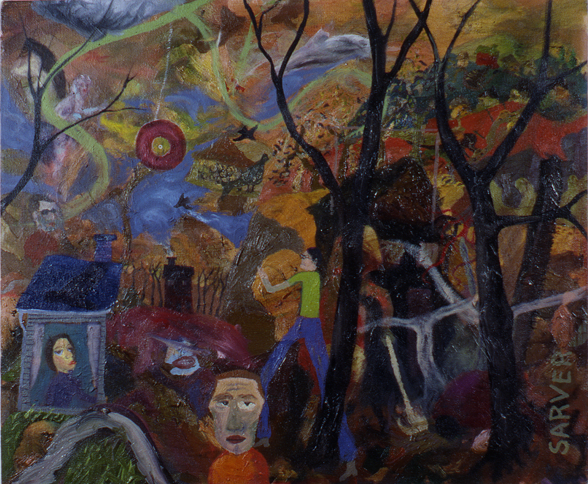 Puppet Parade, acrylic on canvas, 30″ x 30″, 2021, Tom Sarver