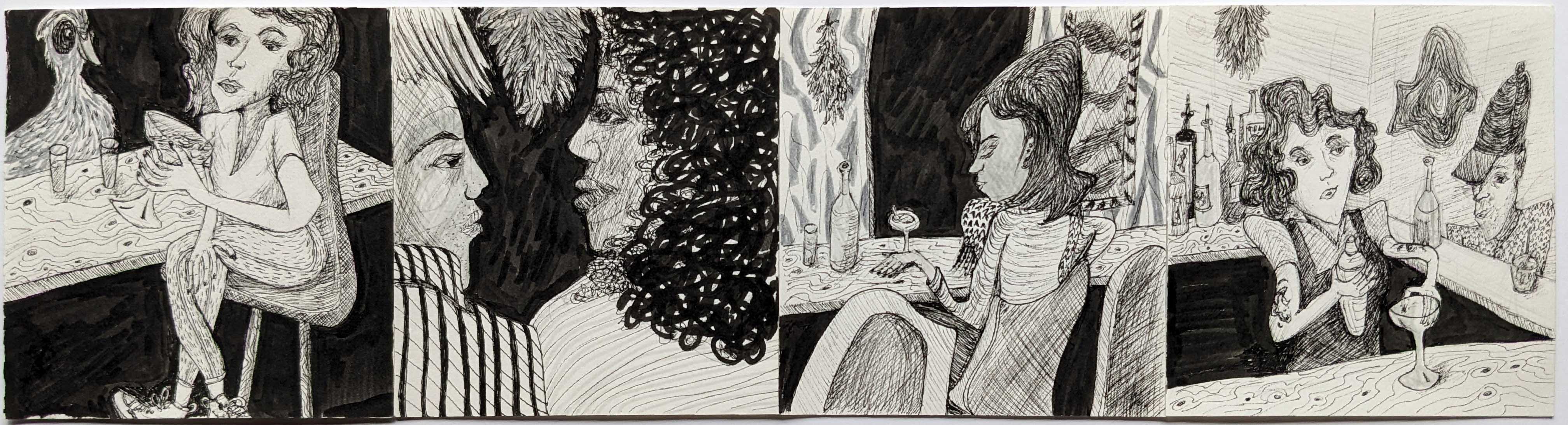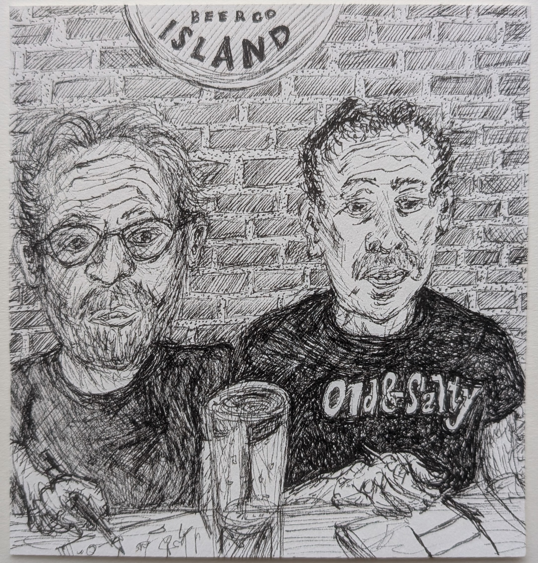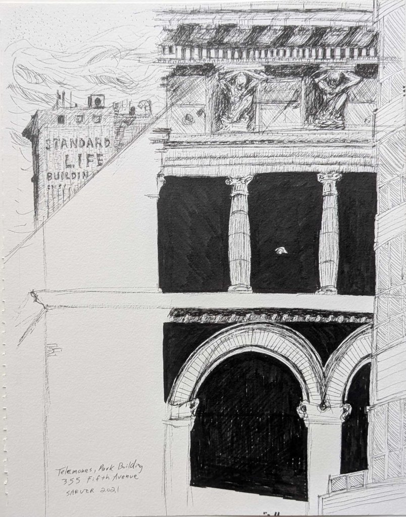 Bar drawing with Rob. TRYP Hotel rooftop, Central Lawrenceville, 10″ x 8 “, June, 2021.