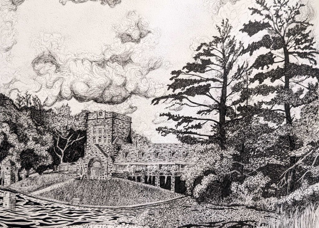 Lake Elizabeth in Allegheny Commons, Allegheny Center. 5.5″ x 6″, June, 2021.