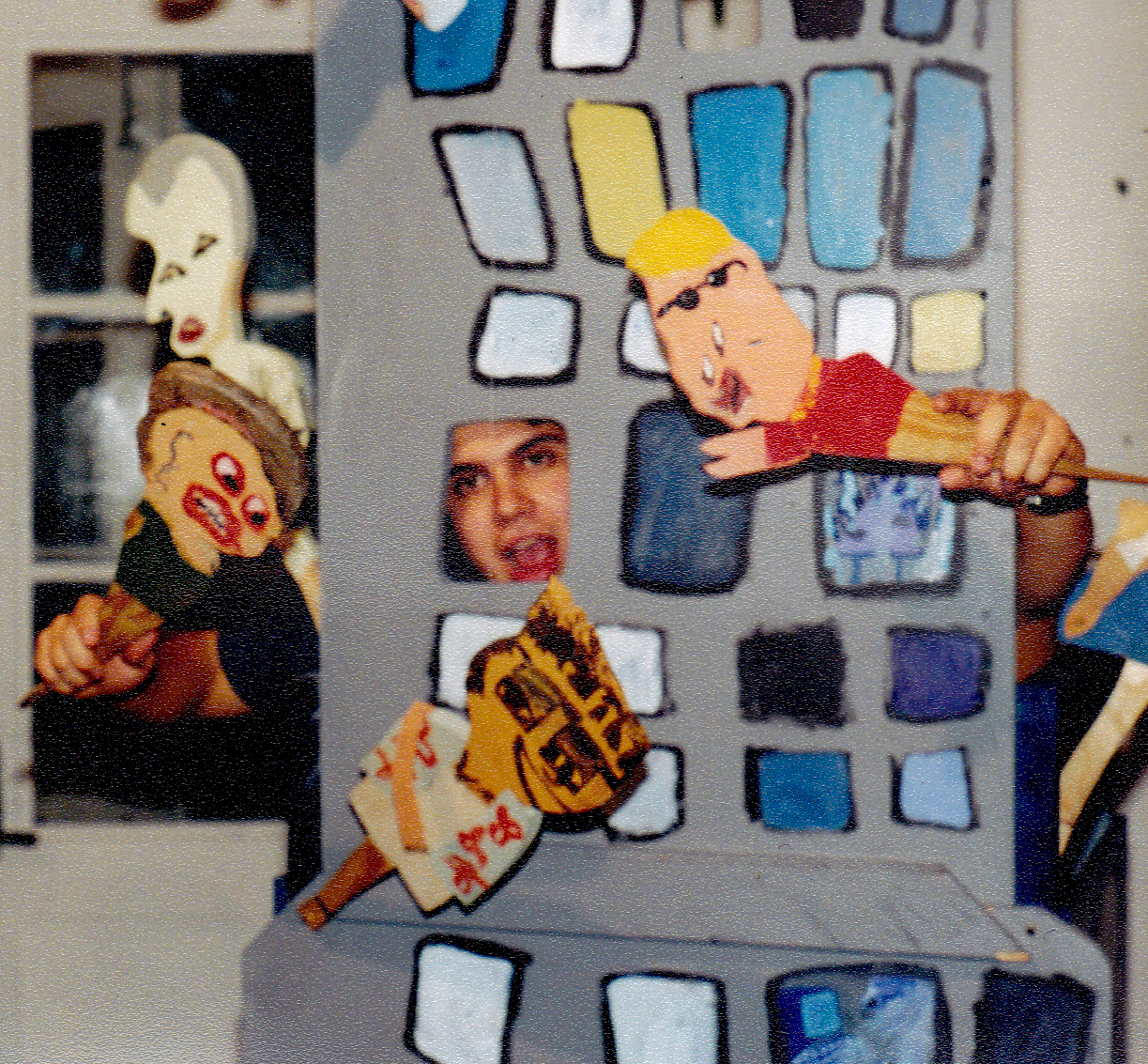 Performing a Kafka-inspired tale at my exhibition, From Puppets to Paintings, AAP Gallery, 937 Liberty Avenue, Pittsburgh, 2001