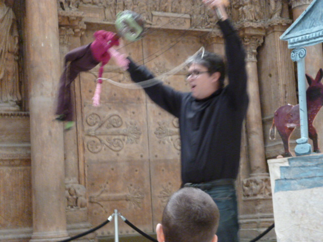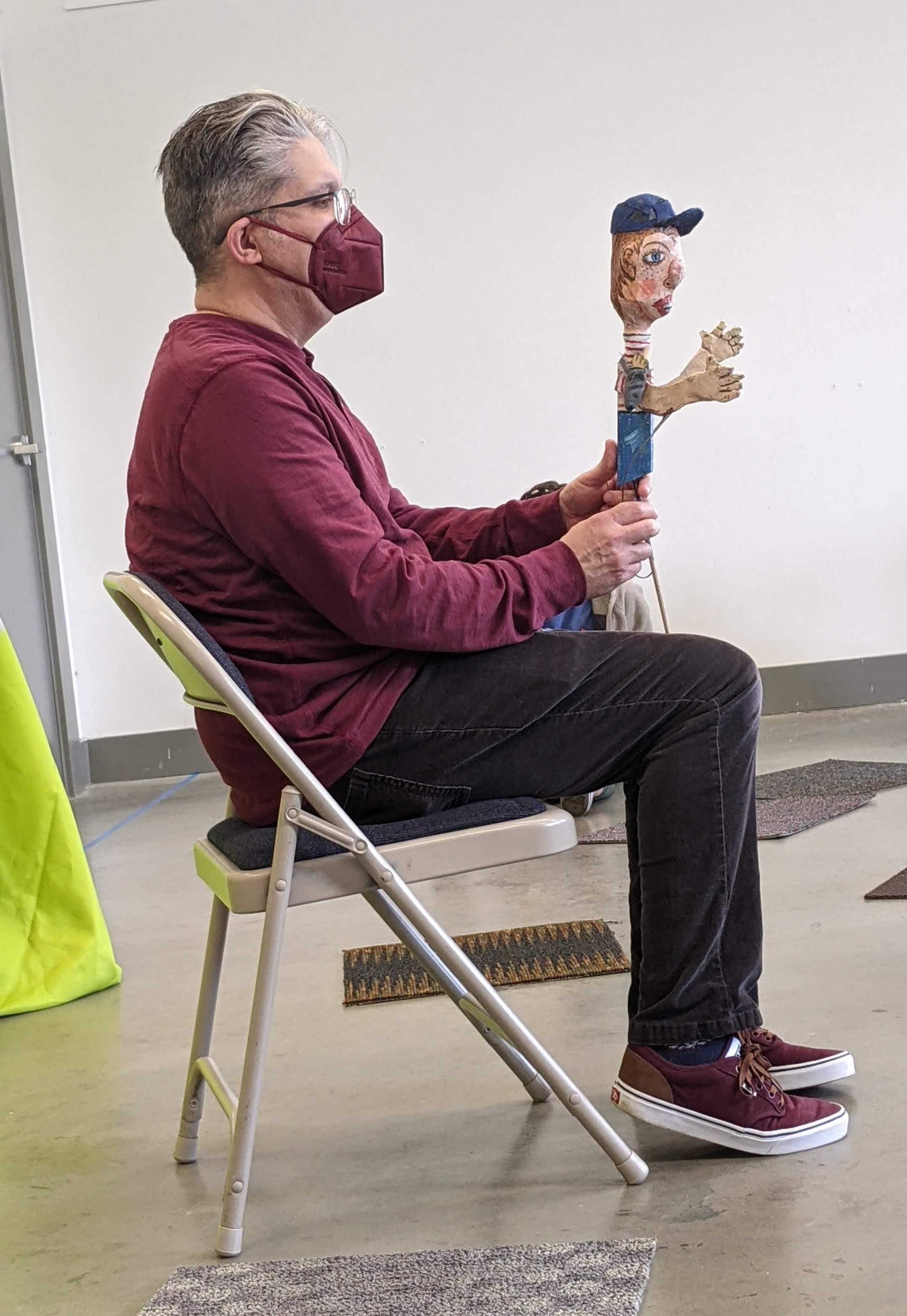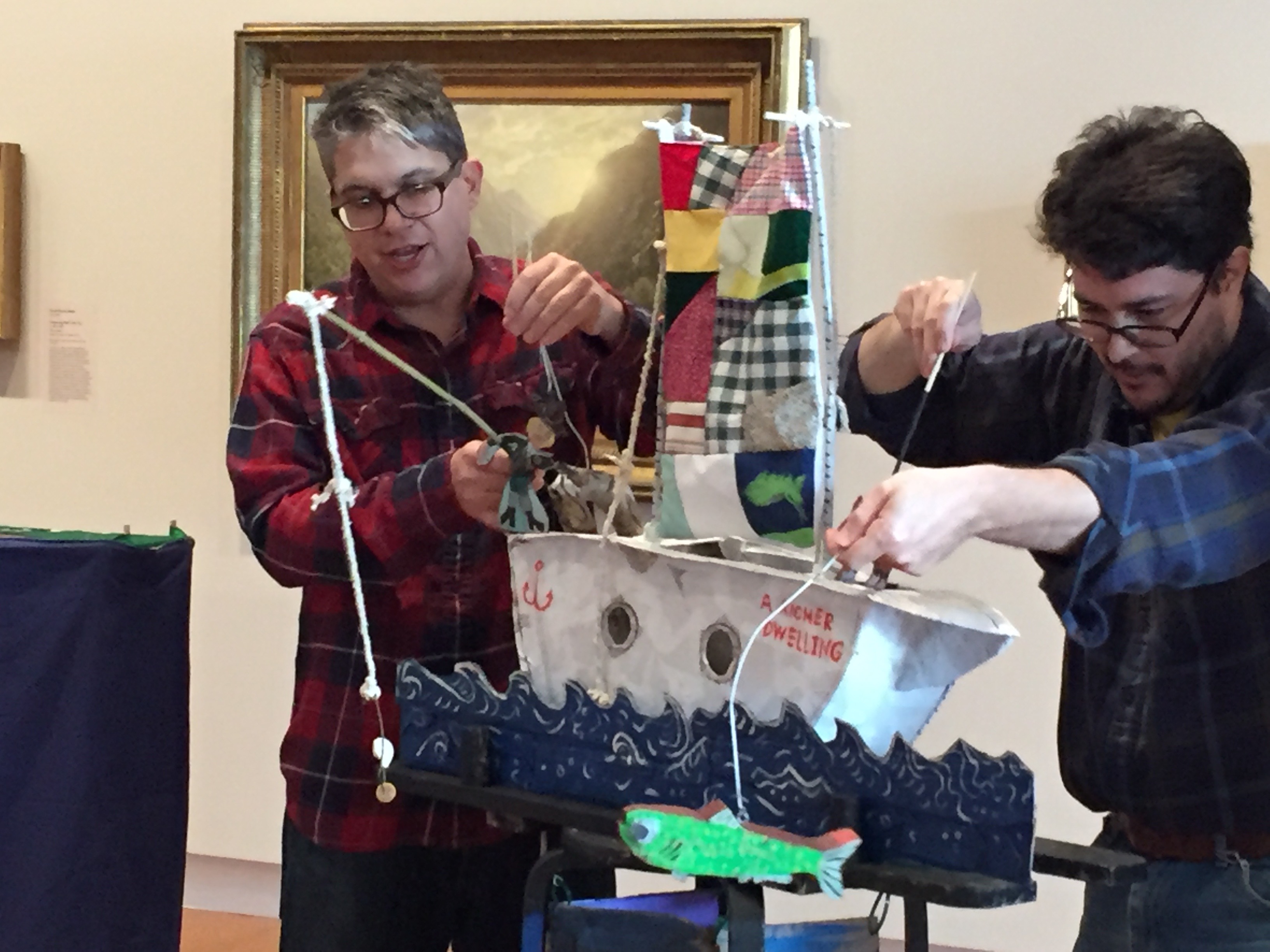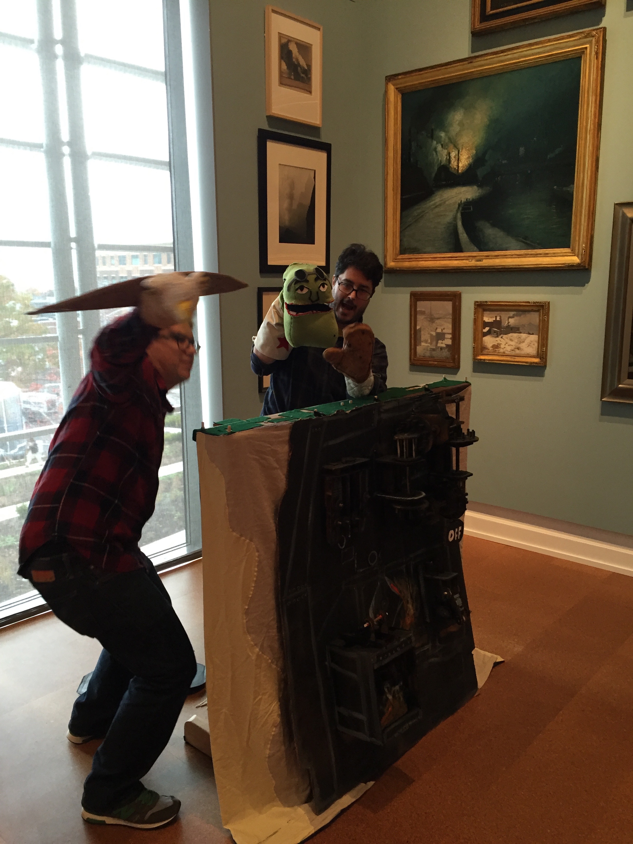 Performing Part 1 of Rip Van Winkle and the Crazy Quilt, an original puppet show with Mike Cuccaro, Grande Re-opening of the Westmoreland Museum of American Art, October 25, 2015.