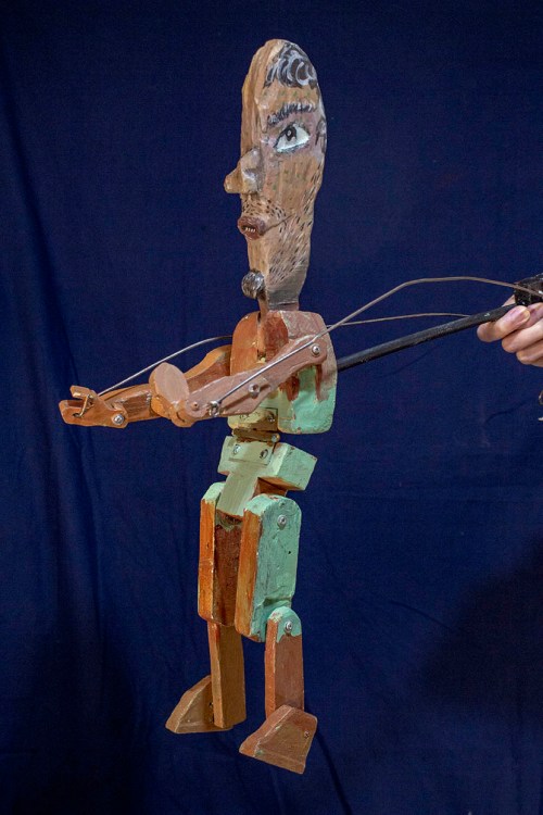 Joe Magarac and Newsie Ned puppets created for November 2018 performances at the Westmoreland Museum of American Art.