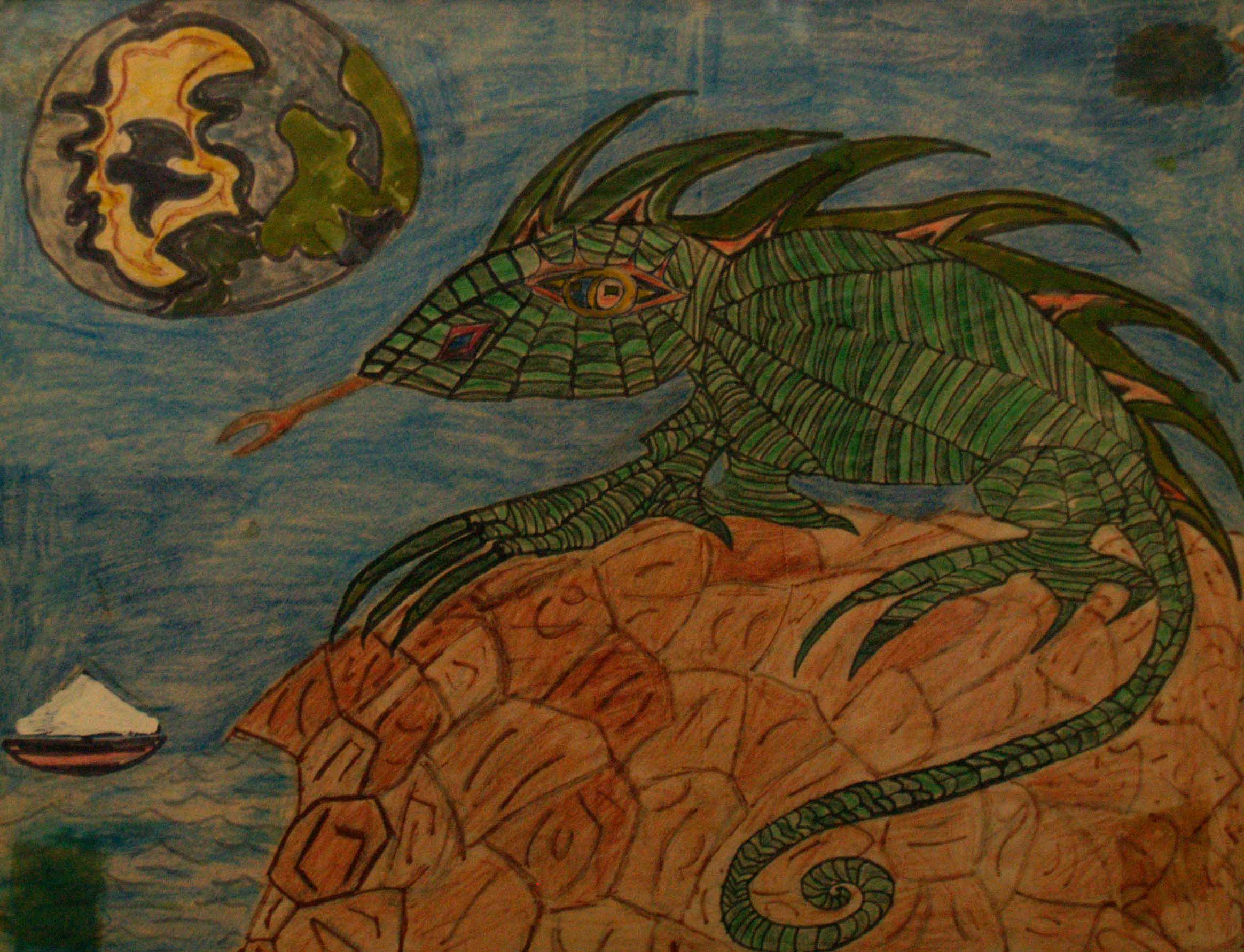 11. Steve Smith, Iguana World, mixed media on paper. In this piece, Smith recalls looking into the window of the pet store at Monroeville Mall.
