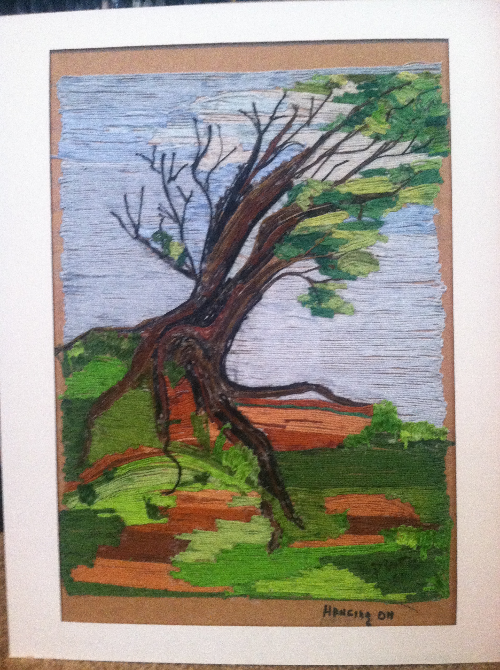 2. Dorothy Williams, Hanging On, embroidery floss on cardboard. African American artist Dorothy Williams (1926 – 2005) created many scenes of her life memories. She grew up in the Hill District. In retirement she resided in East Liberty.