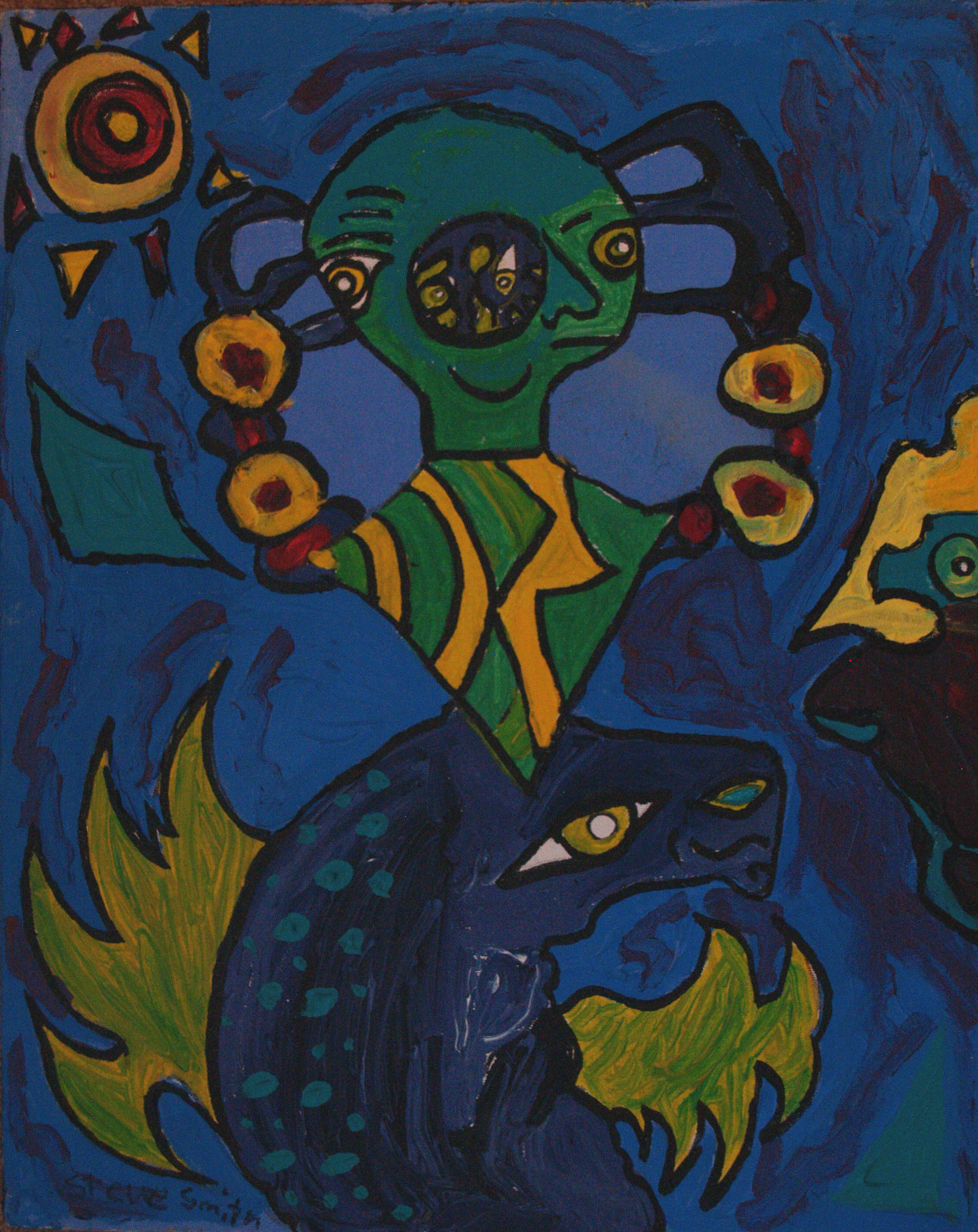 Steve Smith’s paintings are inspired by personal experience, world events, and news broadcasts. His style is influenced by ancient and primitive cultures. As a teenage art student in Braddock, Pennsylvania, Smith was fascinated by the early cultures of Egypt, Africa, and the Americas. Although health issues challenged his career dreams, Smith pushed ahead and continued to make art. Today, Smith has a collection of drawings, sketches, and paintings that document the events of his lifetime. His bold, patterned works have been shown in Pittsburgh hospitals, shops, and neighborhood art galleries.